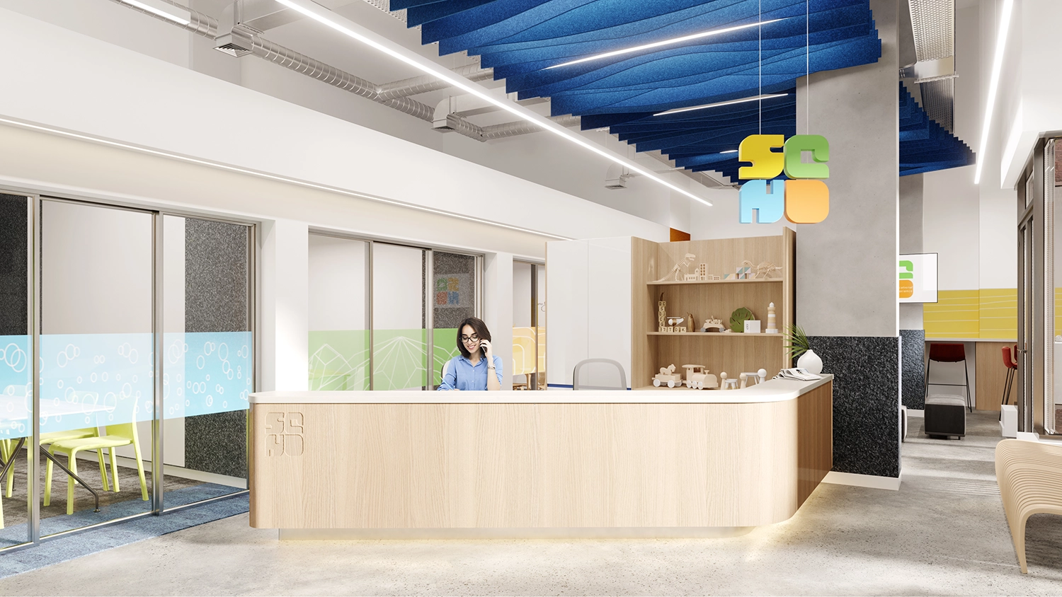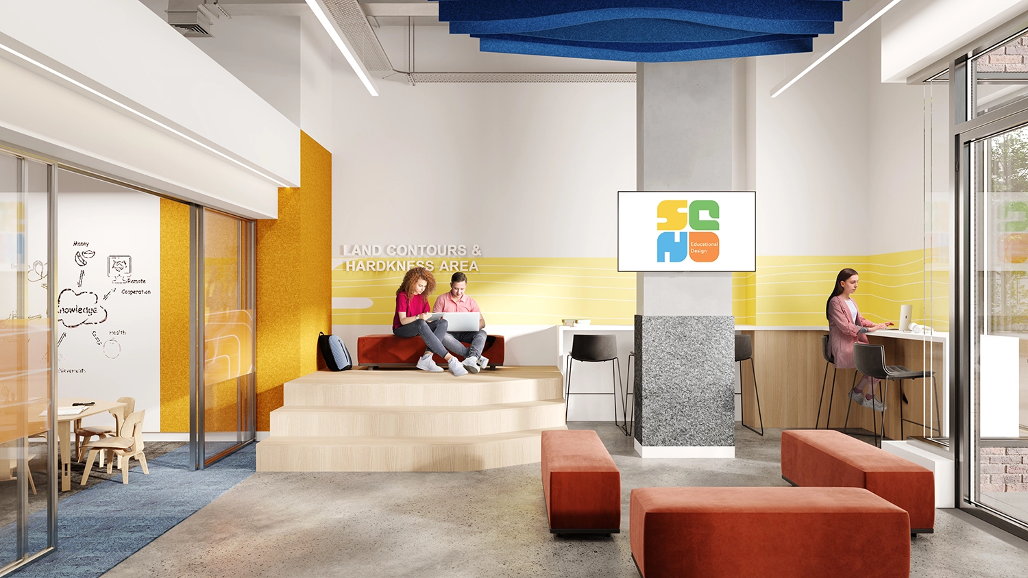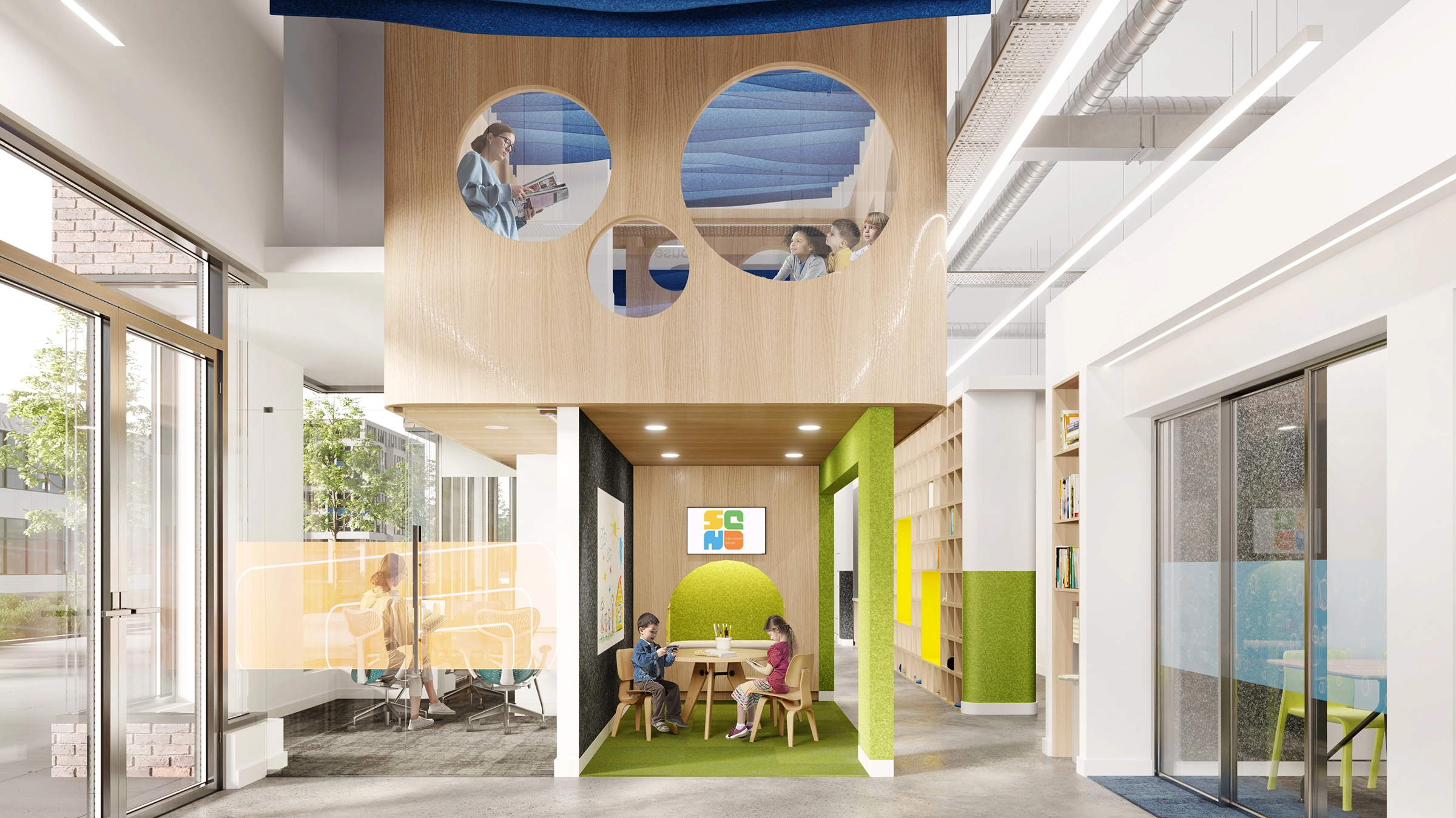 Previously a private school prep institution, SQN Educational Design reimagined their business model in 2020 and approached iDesign to rebrand their company and their new space. SQN’s new model centered around “Design Thinking,” a human-centered approach to learning, collaboration, problem solving, and creation. The philosophy connects children’s learning to nature as the ideal environment for sparking creativity in young minds.